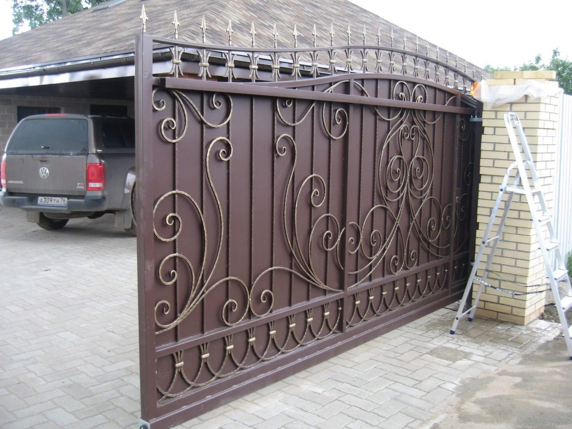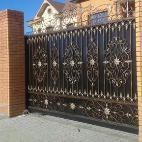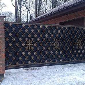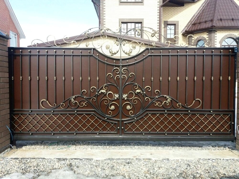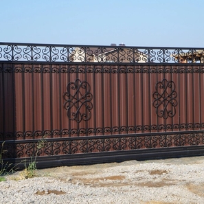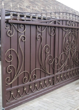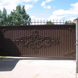 Дополнительно предлагаем кованые декоративные вставки — они придадут воротам благородный вид без ущерба для прочности.
